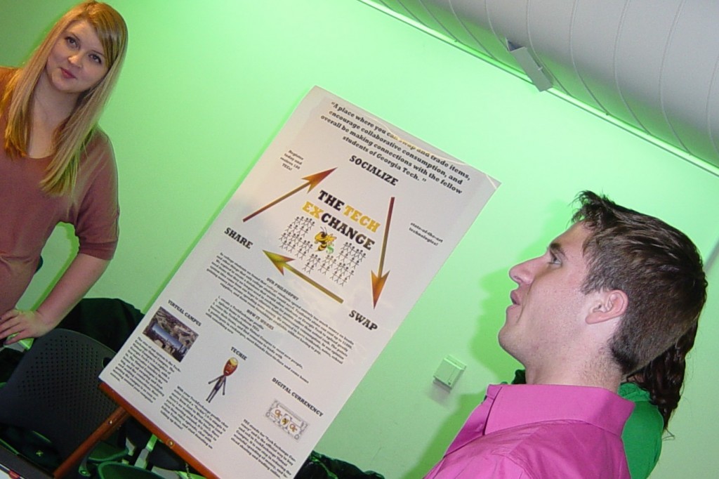 On Wednesday, Dec 8, students in my writing and communication classes presented their ideas on collaborative consumption to the Georgia Tech community. Students enjoyed the challenges of communicating their proposals to students and faculty unfamiliar with the concept of collaborative consumption. Among the materials students showcased were videos, websites, and posters. See my syllabus for more information about the course. Below are some photos from the symposium.